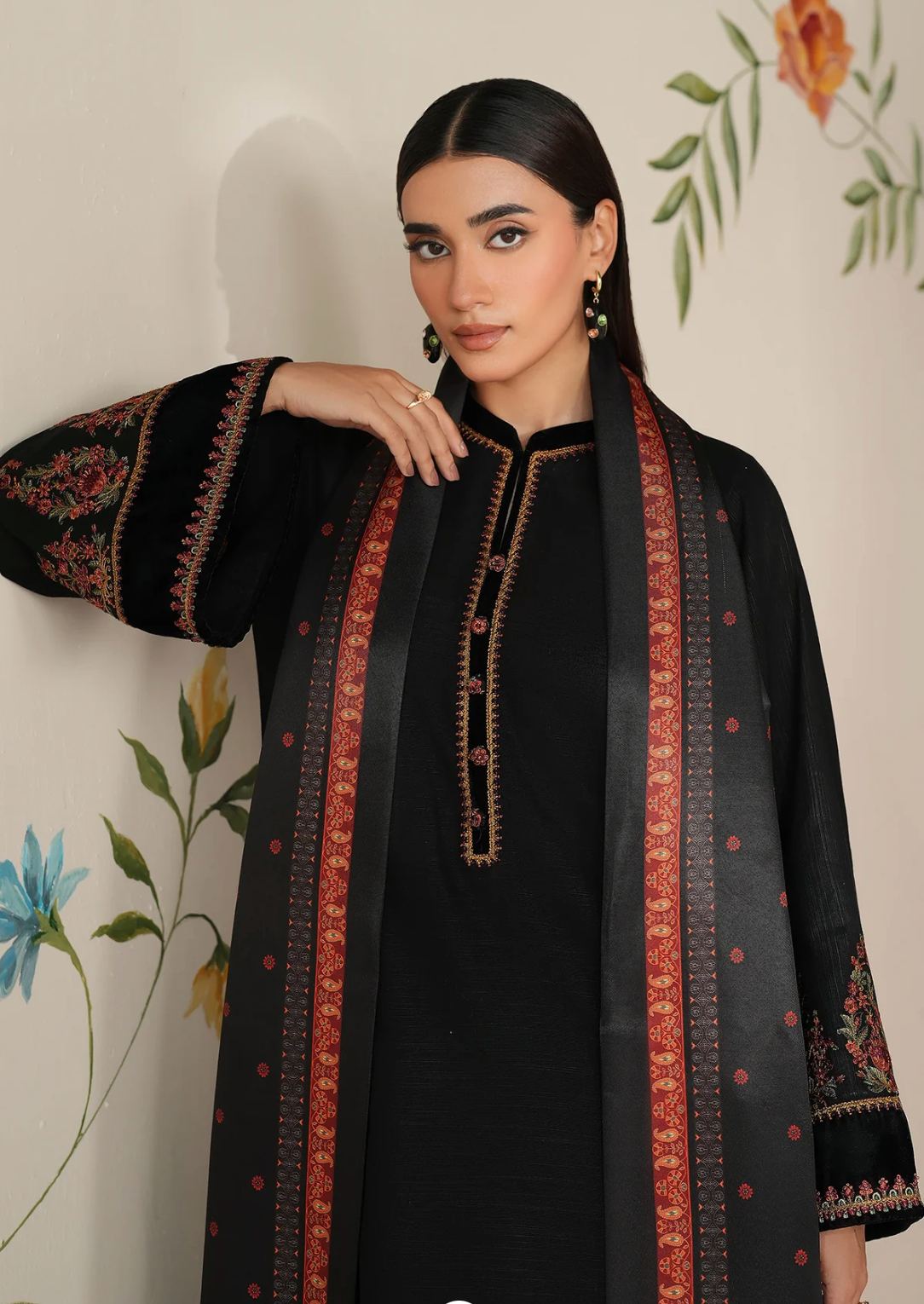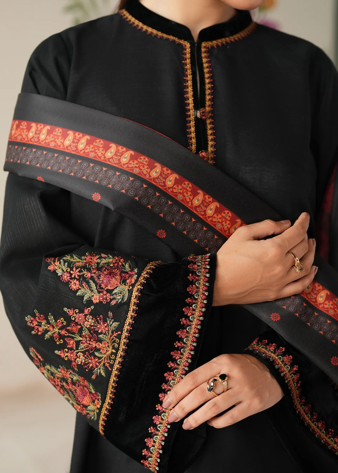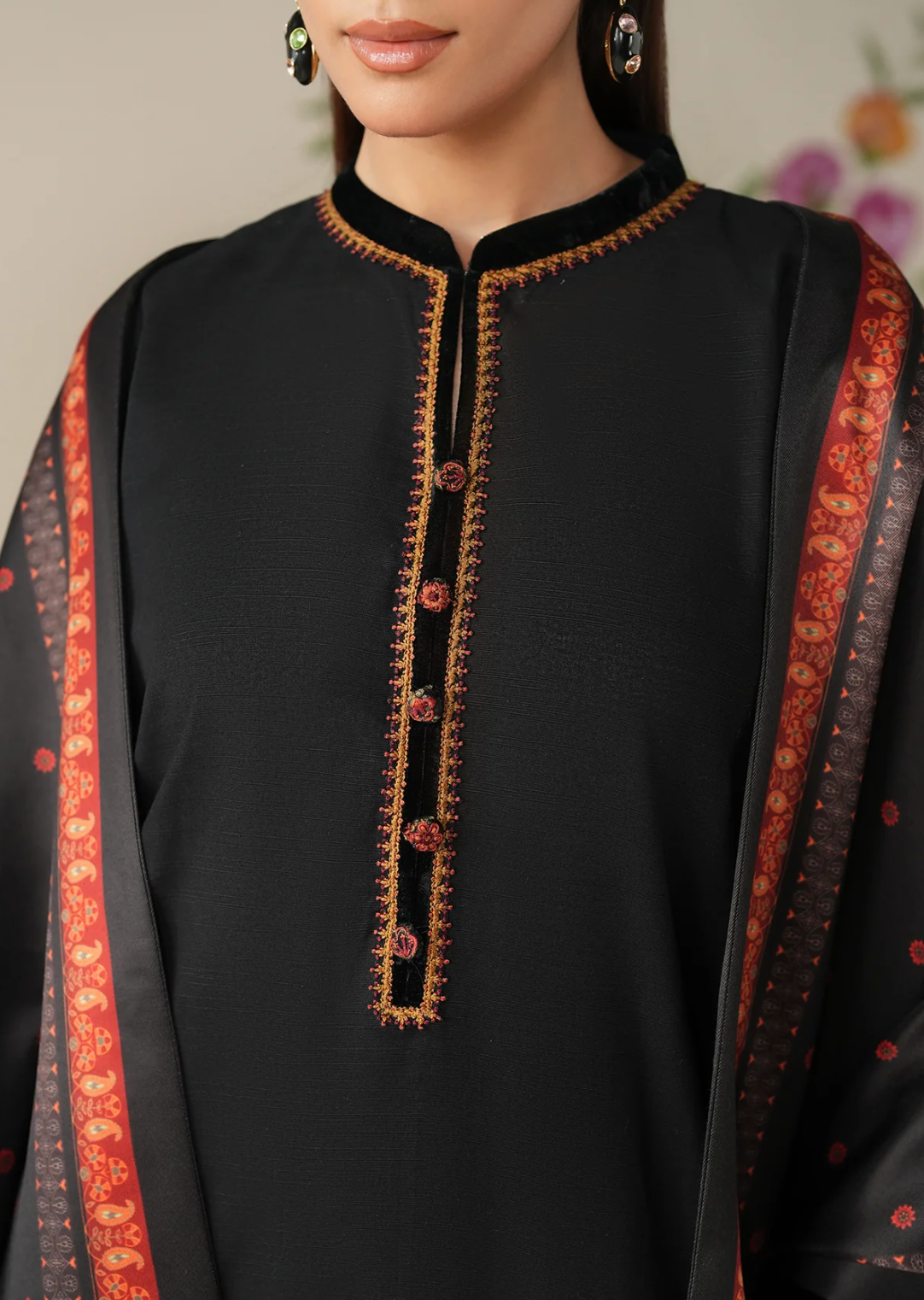 Shirt fabric : embroidered khaddar sleeves and neckline
