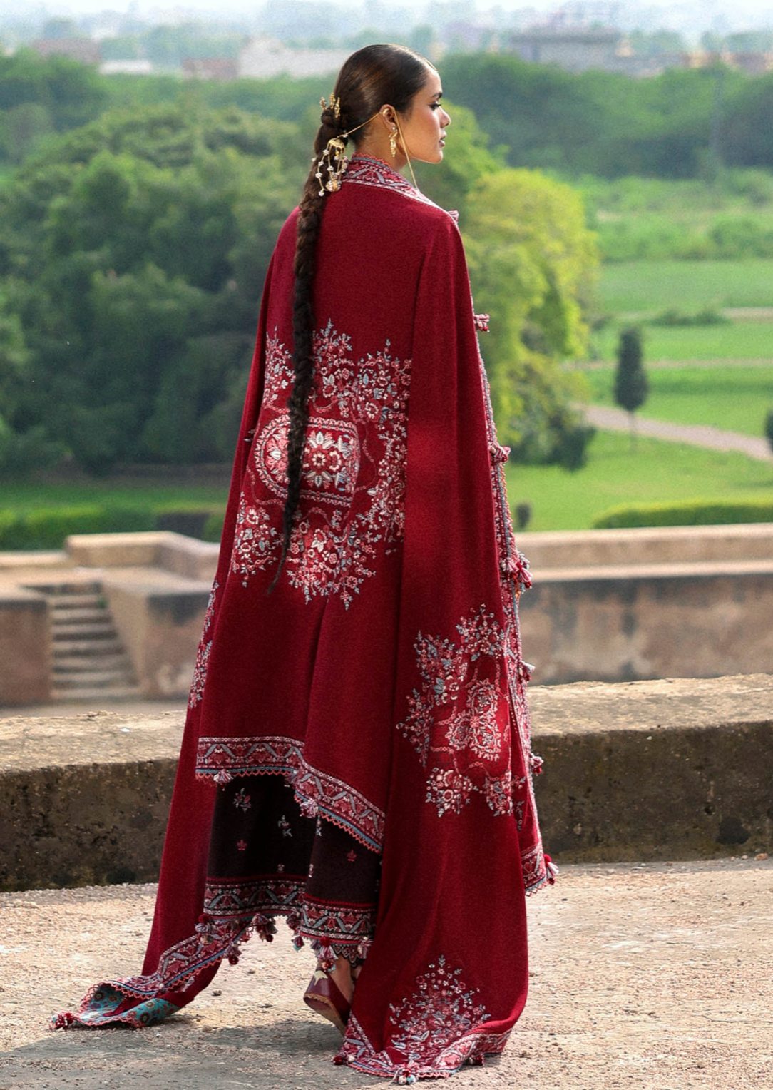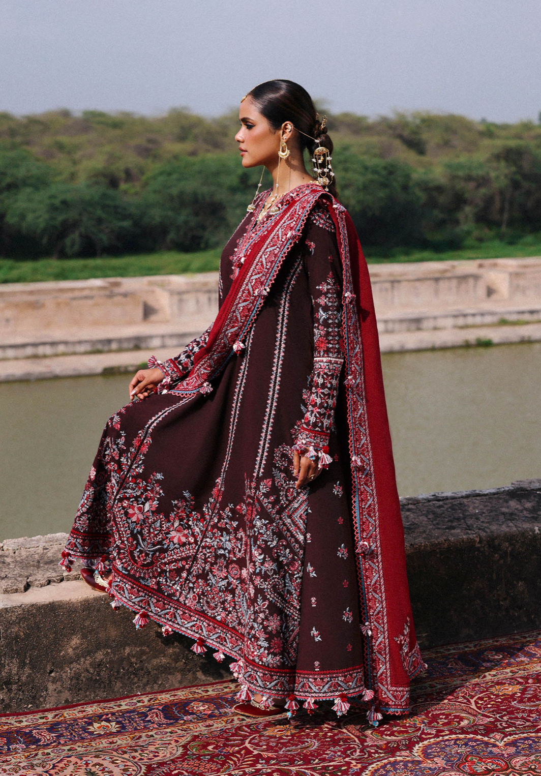 A stunning dark brown karandi ensemble that perfectly blends classic tradition with modern sophistication. Detailed with delicate embroidery and paired with a rich red embroidered shawl, it creates a graceful and luxurious contrast. Completed with a matching embroidery trouser, this outfit is ideal for festive occasions and winter gatherings — a true symbol of timeless elegance and refined style.