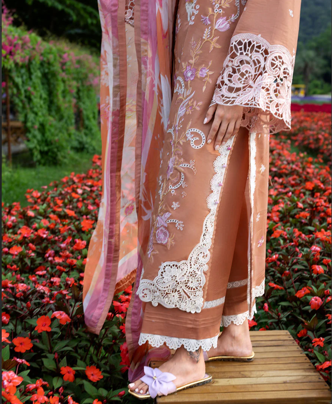 • Embroidered front & back daman border