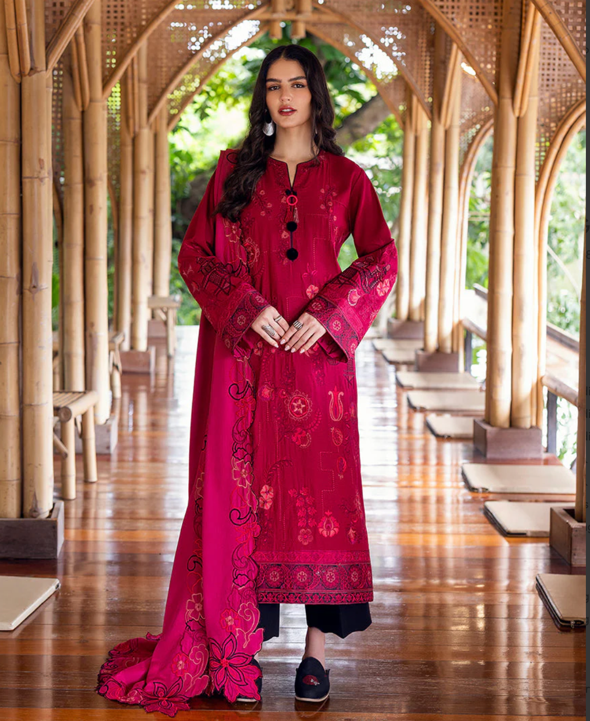 • Embroidered front & back daman border (silk)