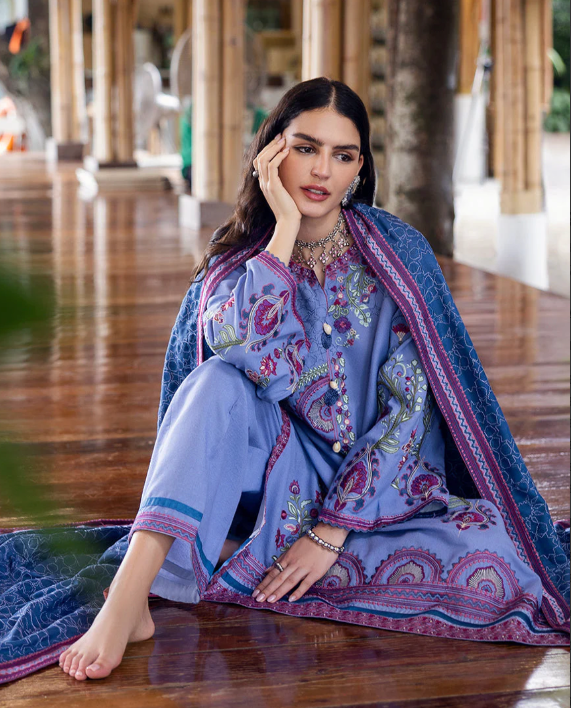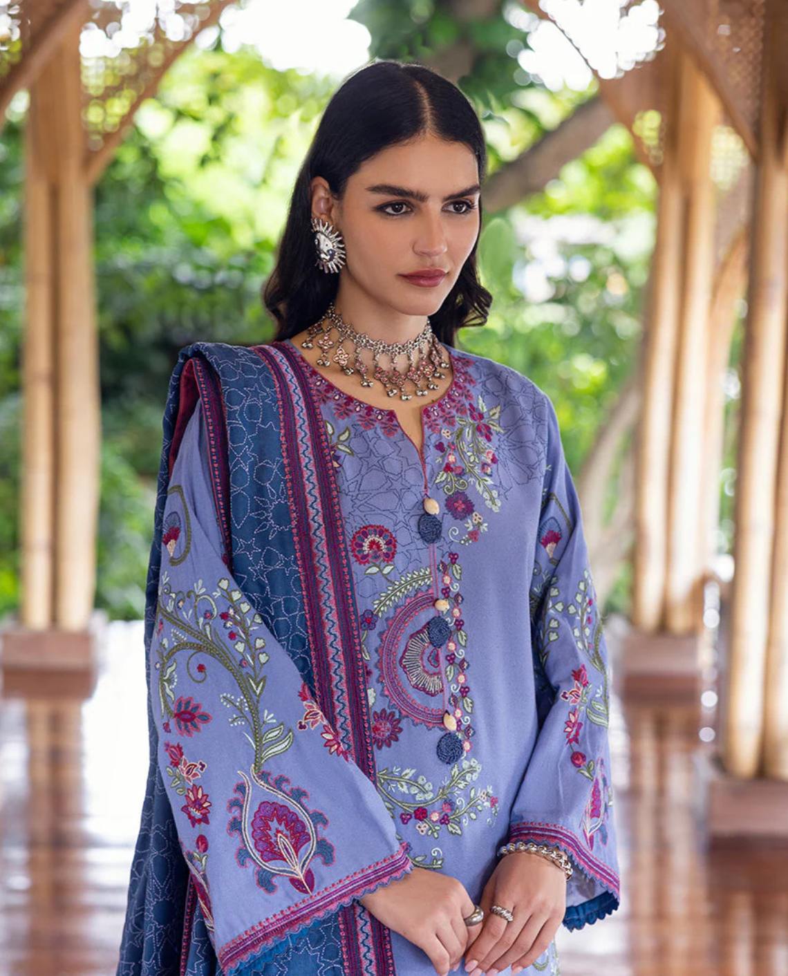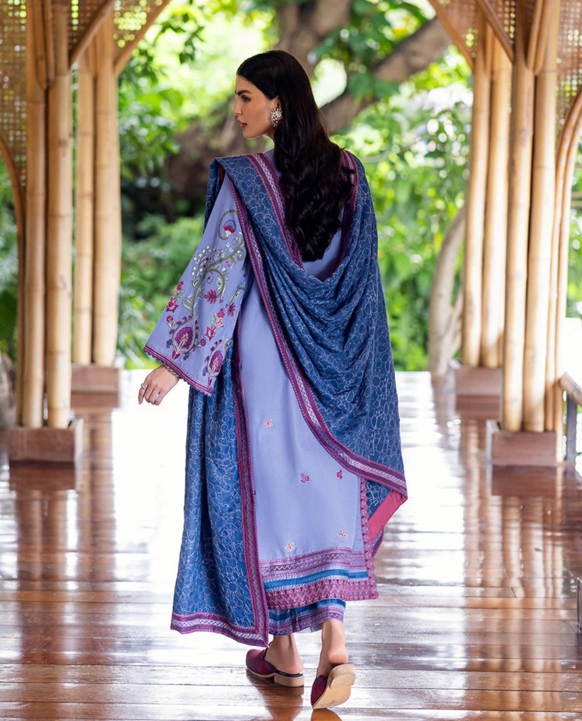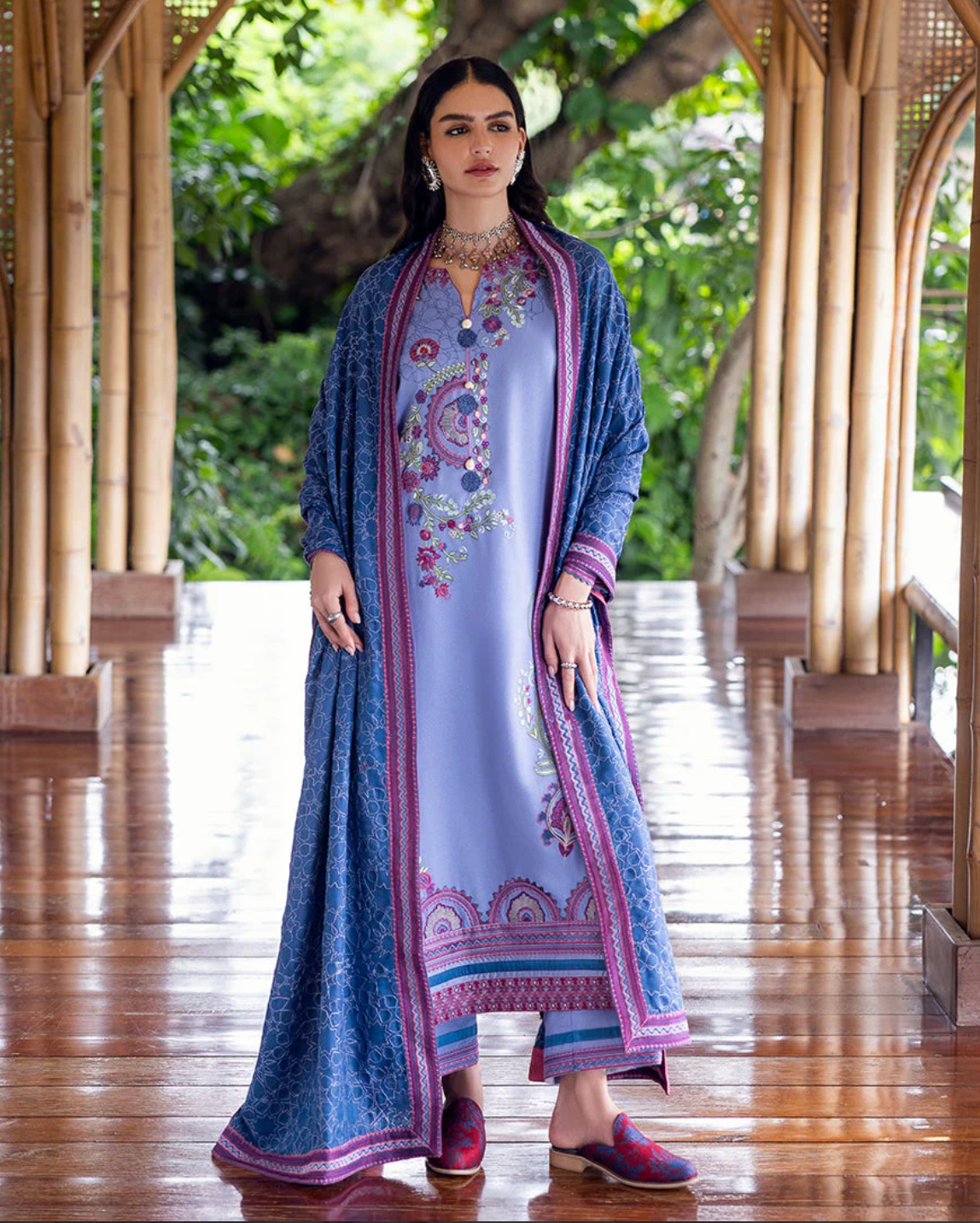 • Embroidered front & back daman border (silk)