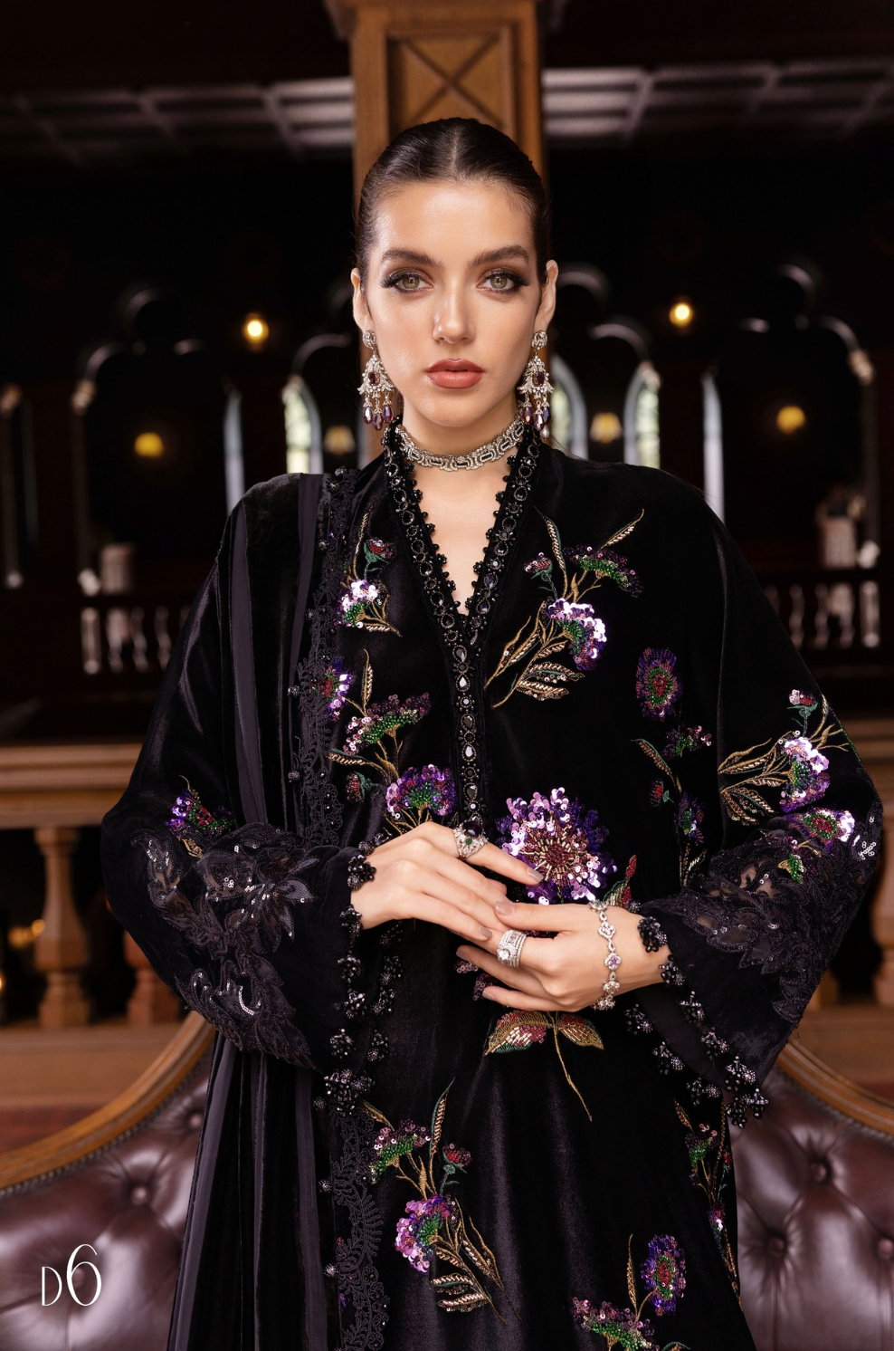Embroidered Velvet Dupatta Pallu With Organza Applique