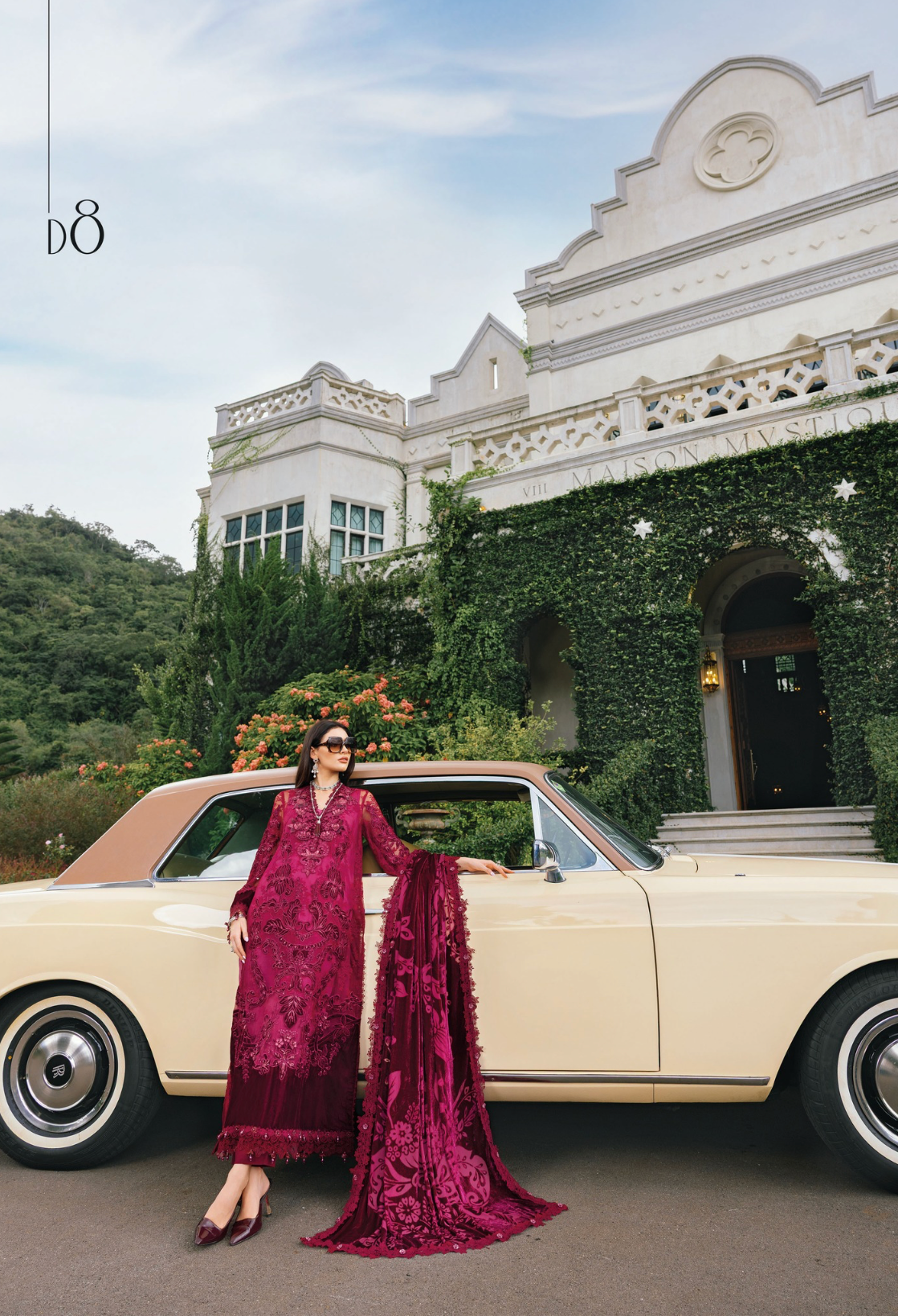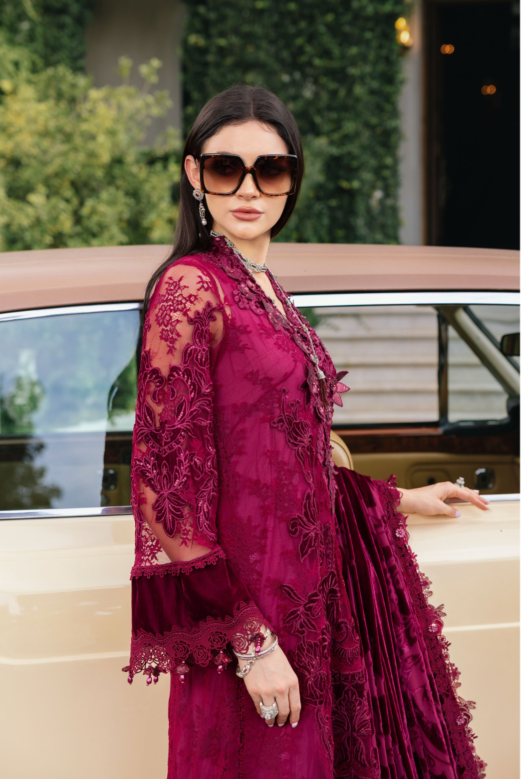 Embroidered Chantilly Front Panels R+L With Velvet Applique, 3D Flowers & Pearls