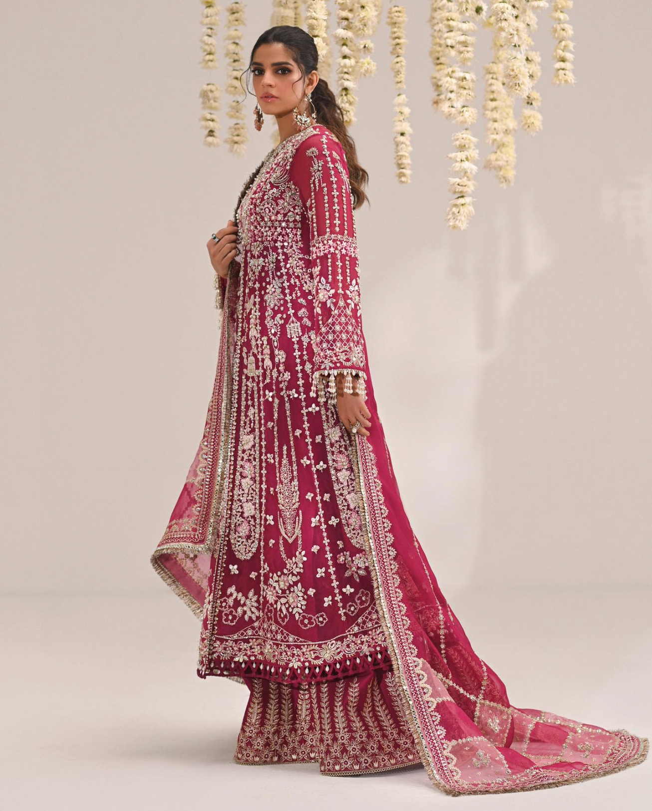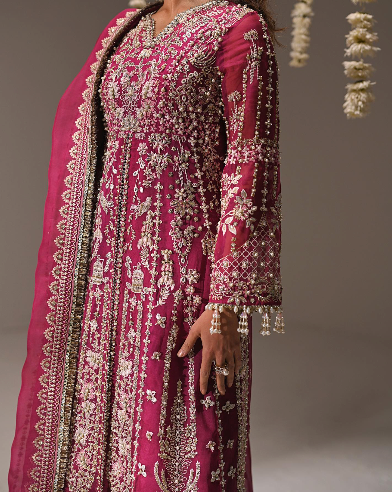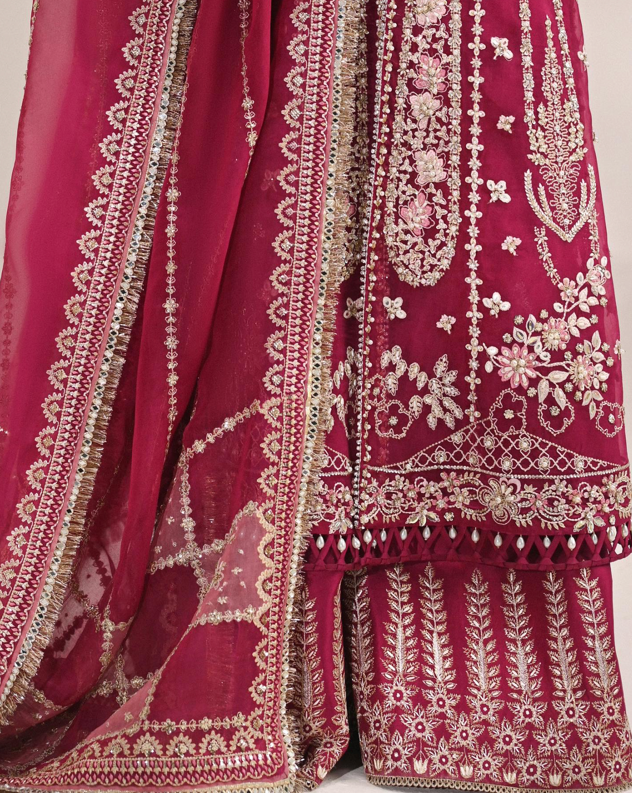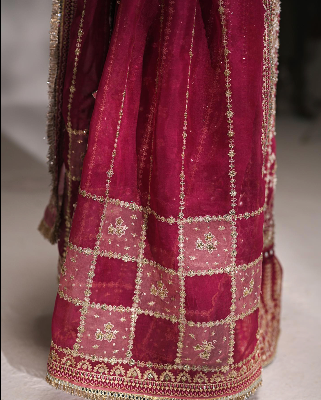 Shirt: Organza (Detailed with resham and tila embroidery, finished with hand embellishments.)