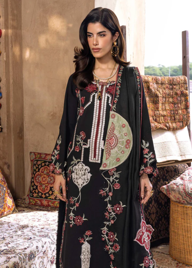 • EMBROIDERED WOOLEN SHAWL PRE-APPLIQUED & PRE-STITCHED 2.5 MTR