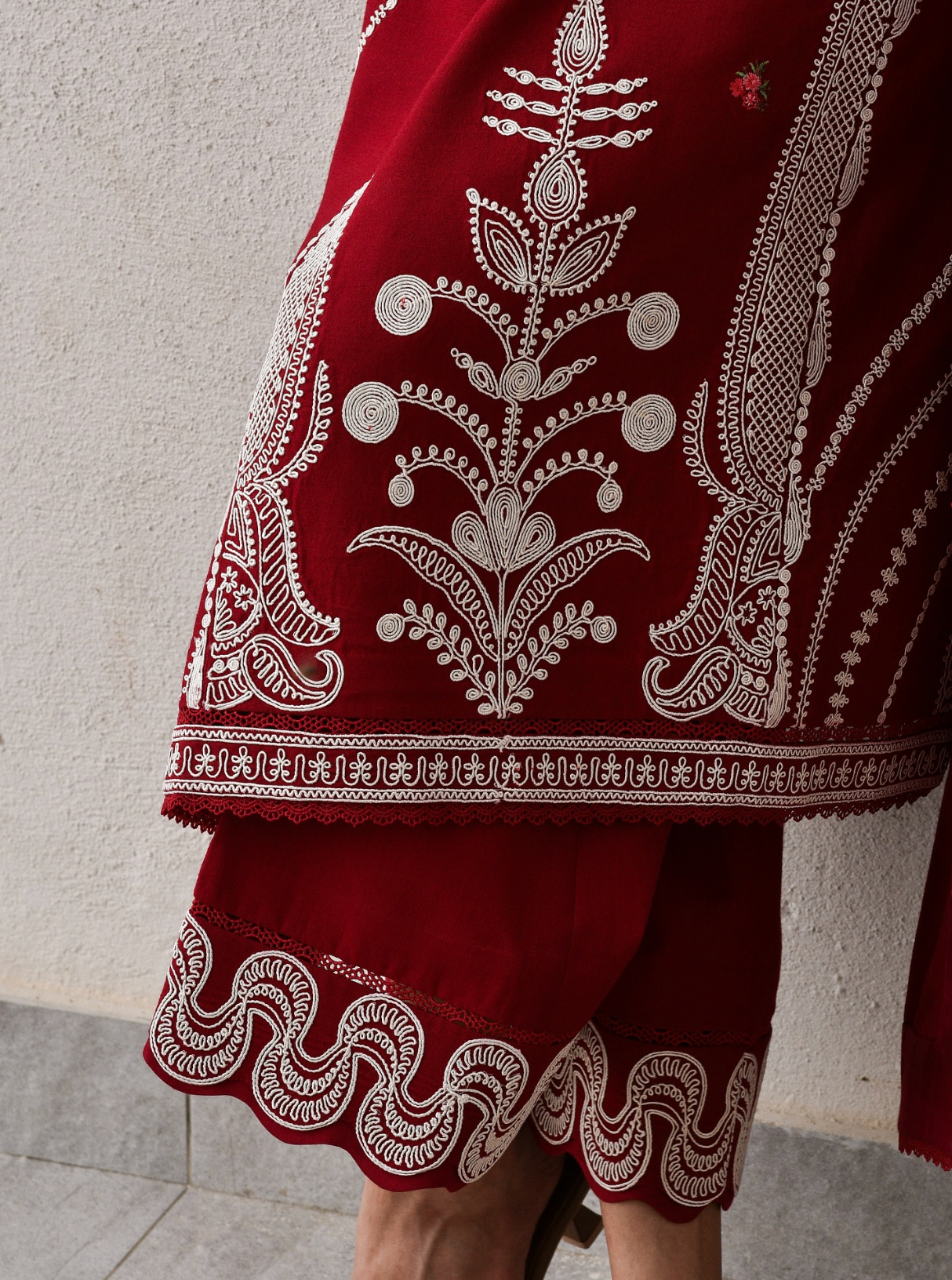 - Embroidered Dyed Karandi Fabric Dupatta 2.50 Mtr