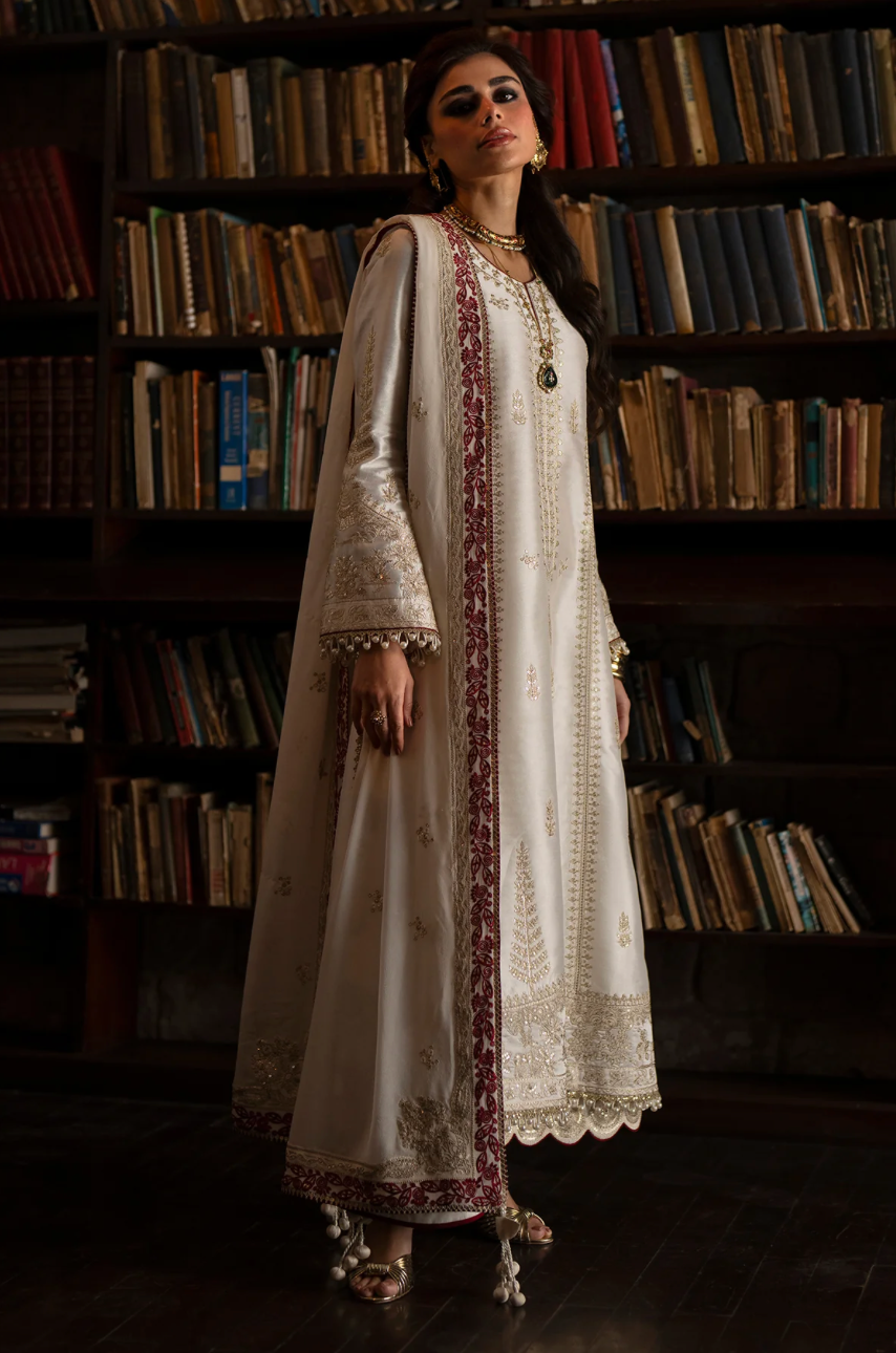 Elevate your style with our off-white A-line kurta featuring exquisite gold embroidery. Paired with a delicate chiffon dupatta embellished with hints of red resham and stylish culottes, this ensemble combines elegance and comfort. Perfect for special occasions.